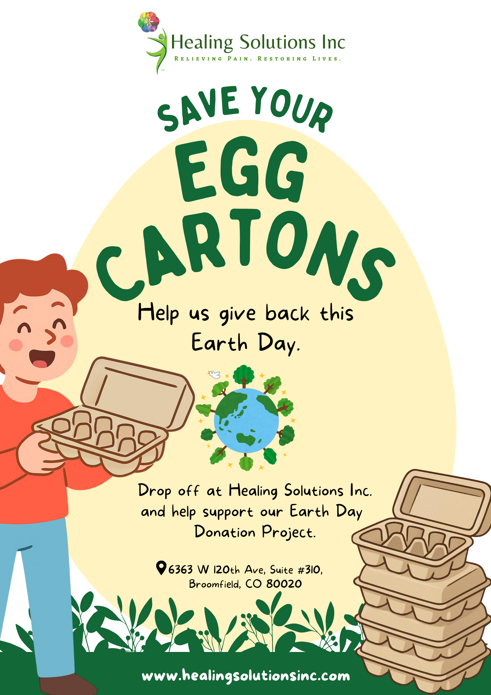 This Earth Day, your saved egg cartons can make a big difference! 🌱 Bring your empty, clean egg cartons to the Healing Solutions Inc. office to support our April donation project.